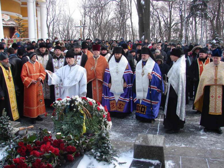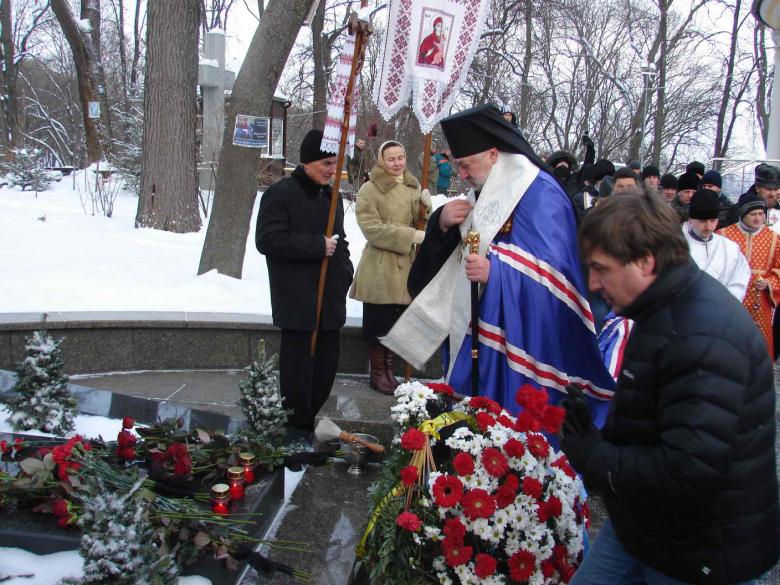 Сьогодні 29 січня 2014 року о 9 годині ранку на Аскольдовій могилі преосвященний єпископ Вишгородський і Подільський Володимир (Черпак) у співслужінні з преосвященним єпископом Вишгородським Агапітом (Гуменюком) (УПЦ КП), духовенством парафії Свт. Миколая на Аскольдовій могилі та чисельною делегацією священників з Майдану відправили заупокійну літію в пам'ять Героїв Крут. Вічна пам'ять Героям!