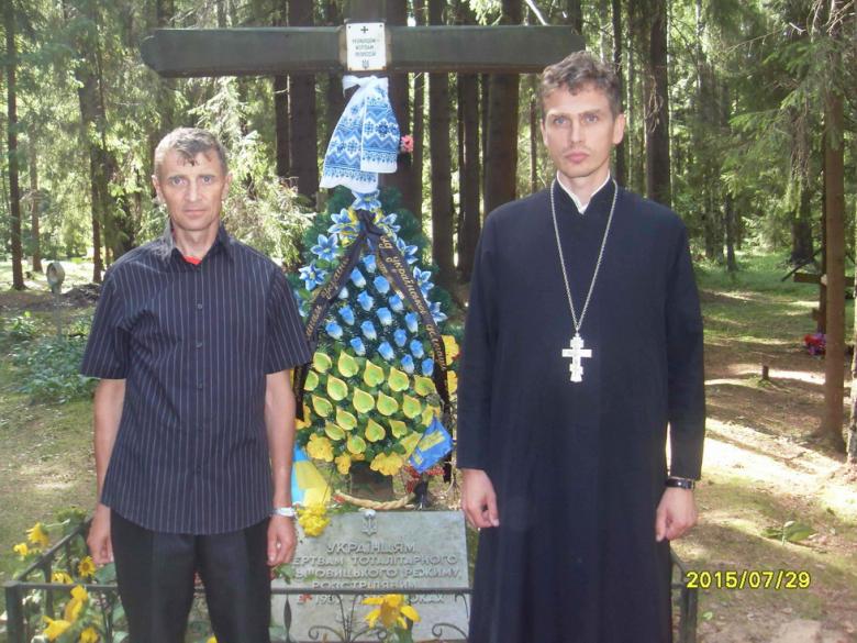 Свящ. Дмитро Каран біля хреста в урочищі Сандармох